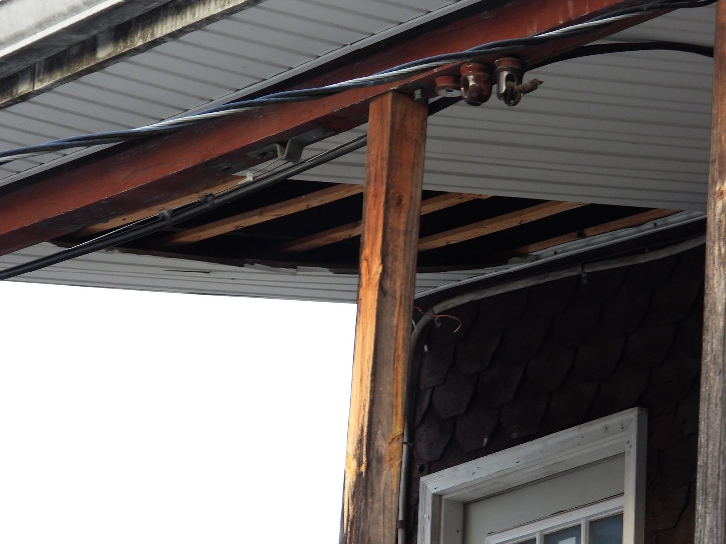 This particular pigeon struts decisively to the edge of the eave and drops down underneath, where several ceiling strips of an abandoned third-floor apartment are missing. It flaps and flutters up into them and disappears, and then I can hear it clattering as it eases its way back underneath, closer to me. Silence, and then the sound of deep cooing that Merlin easily understands.