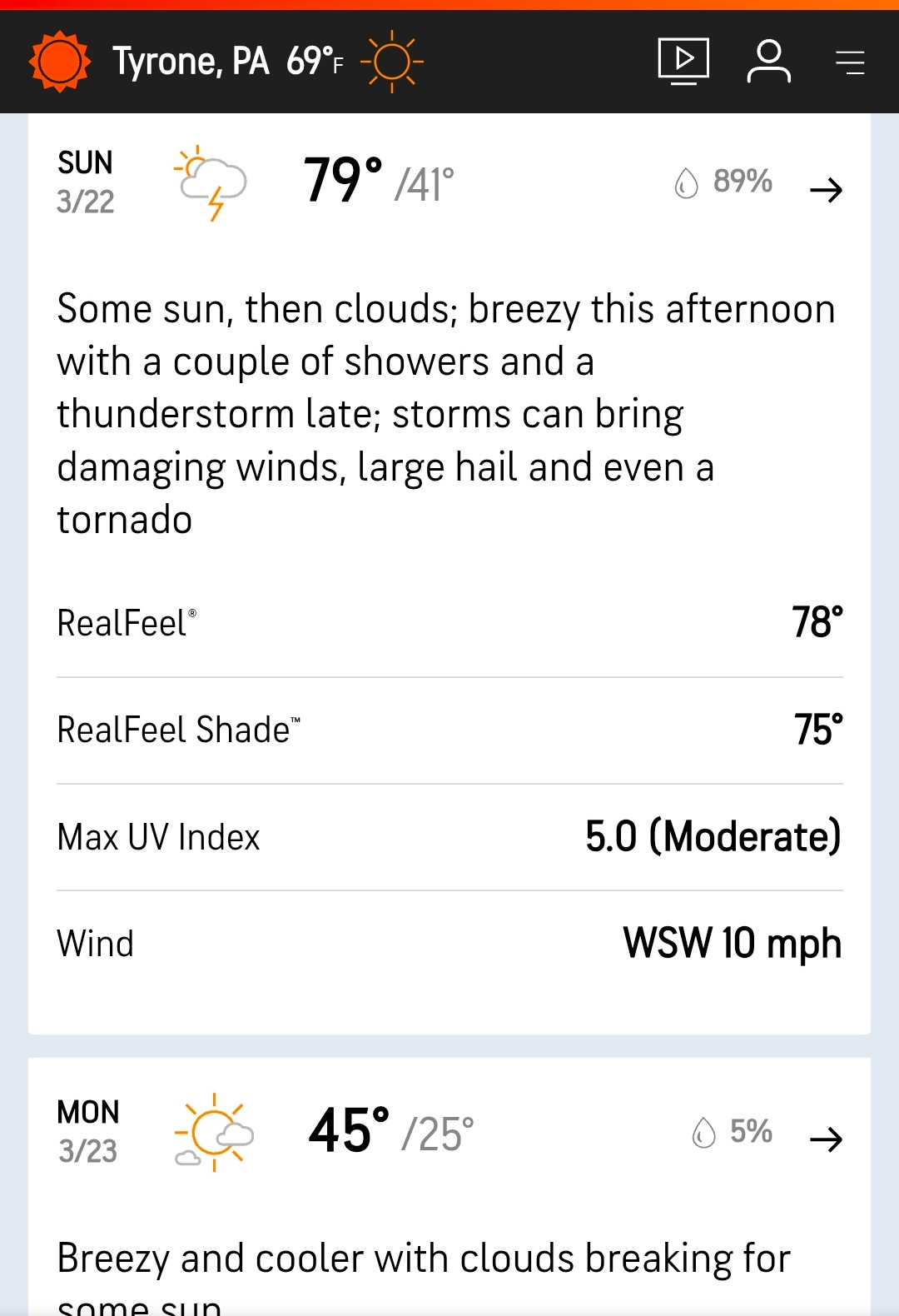 A violent round of storms seeps through from the northwest on the night of the 26th, into the 27th, but by dawn the rain has stopped even though the low clouds are still roiling in the breeze. Around 6:15, sirens seem to converge on town from all directions, then fade. The temperature is 46, and the first Turkey Vultures are flapping over town toward Bald Eagle Mountain already in the 6:52 AM gloom—things could get interesting! I gradually realize that semis are backing up on the interstate to get off the highway, and a line of vehicles is stopped as far as the eye can see in the northbound lane, while the streets are clogged with desperate commuters from the Tyrone exit. The sirens from earlier are explained by late-breaking news of a major collision.