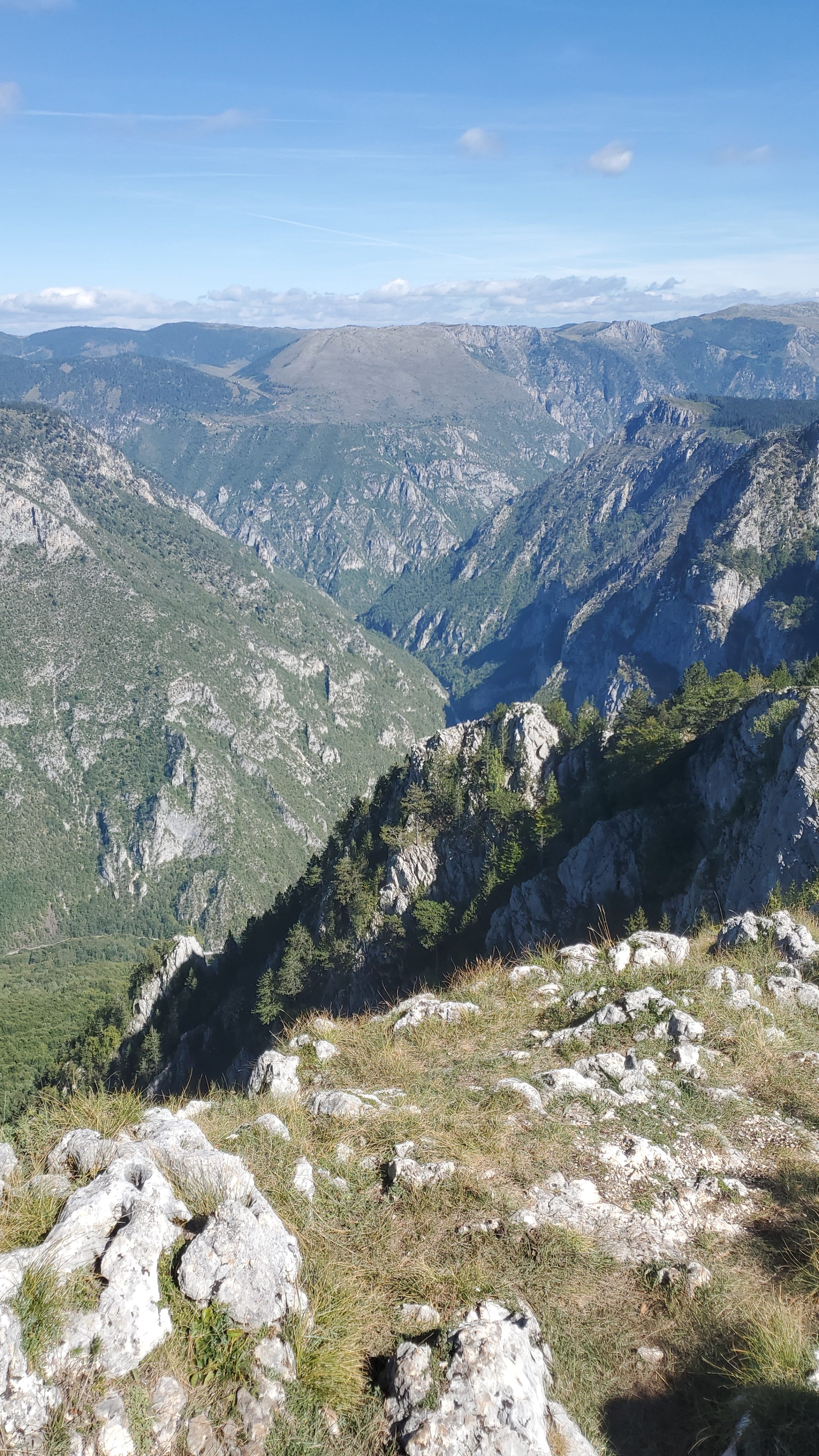 The views did not disappoint - 3,000 feet down to the Tara, with ravens and Alpine Swifts zooming about. Guardrails and warning signs were nowhere to be seen, reminding me a bit of the DIY approach of Latin America, and clearly startling some of the small multitude of tourists from across the continent and beyond.