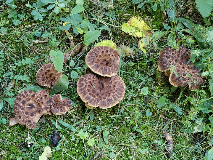 We looped back down on a gentler and less jagged trail with no one on it, and giant mushrooms galore.