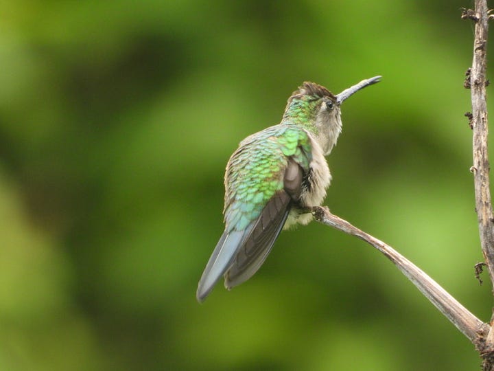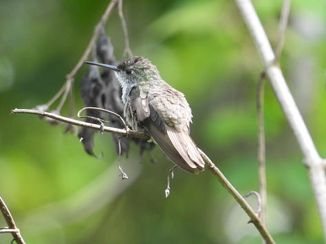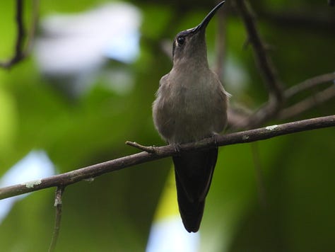 The private sanctuary’s eBird numbers are still pretty low due to spotty coverage, but the richness of the location even pre-migration was impressive: King Vultures soared over, while woodcreepers, motmots, bentbills, flatbills, and hummers of all descriptions reveled in the dense, protected undergrowth, canopy, and fruiting and flowering trees Isidro has fostered intentionally to increase biodiversity. At night, we were startled by a Black-and-white Owl calling from a few feet away, though the resident Northern Potoos were silent, perhaps cowed by dueling Evangelical loudspeakers blasting out joyous but highly annoying Christianish sounds from a village 2km away.