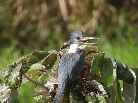 Even by early August, northern migrants had already begun to trickle in. The Louisiana Waterthrush bobbing about forest pools was expected, but more surprising were not one but two American Redstarts, a male and a female, on July 3. A couple days previous, Isidro had watched a Belted Kingfisher, a smaller version of the resident Ringed Kingfisher, feed in his tilapia ponds. A few days later, he sent me a recording of that familiar scold—the Red-eyed Vireo had also returned.